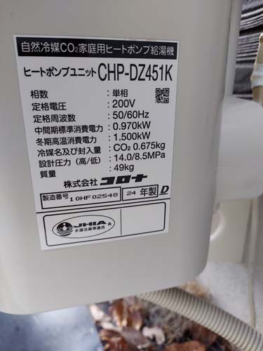 北上市 コロナ自然冷媒CO2家庭用ヒートポンプ給湯機貯湯ユニットCTU-37AZ1K、ヒートポンプユニットCHP-DZ451K エコキュート交換工事|岩手で給湯器交換・取り付けなら|激安給湯器交換、岩手給湯.com